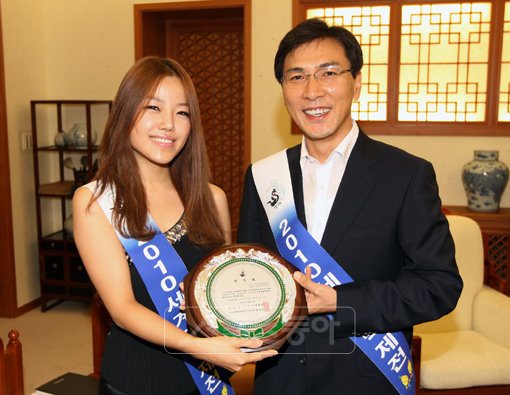 미지는 16일 대전광역시 선화동 충남도청 도지사실에서 안희정 지사로부터 위촉패를 받았다.