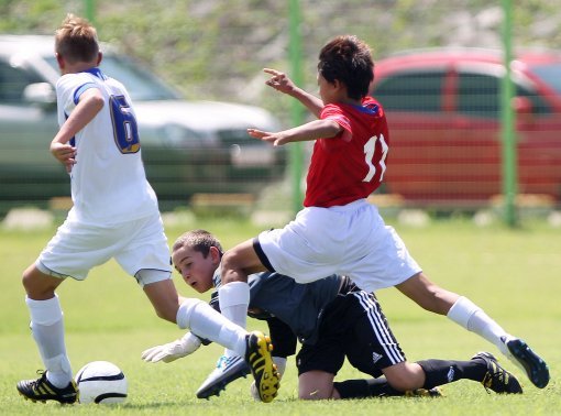 18일 경북 경주시 구황동 알천2구장에서 열린 ‘2010 경주 국제 유소년(U-12) 축구 페스티벌’한국 화랑팀과 영국 스윈돈 타운팀의 경기에서 한국 이승우가 골키퍼를 제치고 문전쇄도해 슛을 성공시켰다.