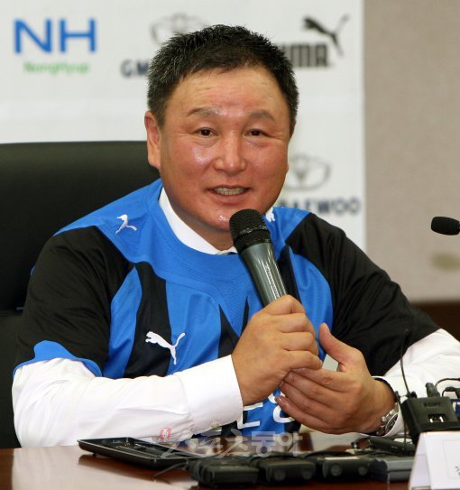23일 오전 인천시청에서 진행된 프로축구 인천 유나이티드의 새 사령탑에 허정무 감독의 취임 기자회견에서 허정무 감독이 기자회견을 갖고 있다.