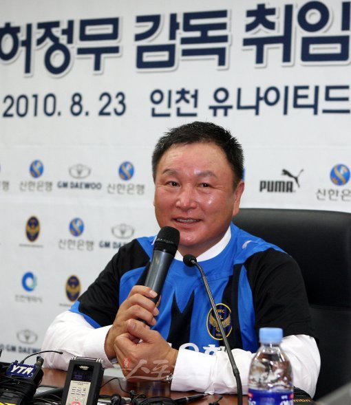 23일 오전 인천시청에서 진행된 프로축구 인천 유나이티드의 새 사령탑에 허정무 감독의 취임 기자회견에서 허정무 감독이 기자회견을 갖고 있다.