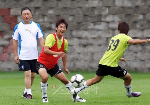 허정무 인천 유나이티드 신임 감독이 26일 오전 인천 연수구 승기연습구장에서 선수들의 미니게임을 지켜보고 있다.