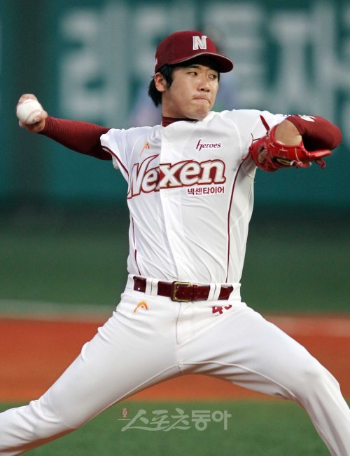 27일 저녁 서울 목동야구장에서 열린 2010 프로야구 넥센 히어로즈와 한화 이글스의 경기에서 넥센 선발 투수 고원준이 역투하고 있다.