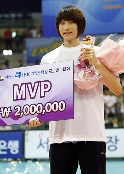 2010 수원·IBK 기업은행컵 프로배구대회에서 여자부 MVP를 차지한 흥국생명의 김연경이 수상 뒤 기념촬영을 하고 있다.