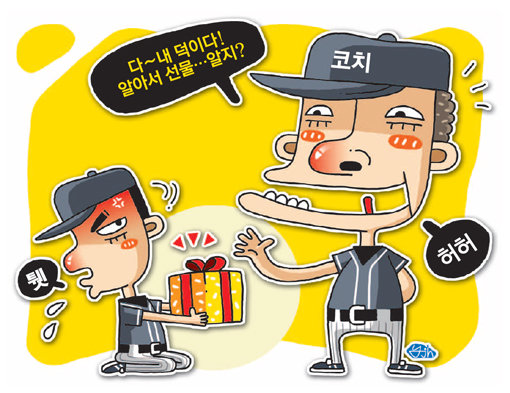 추석 시즌이에요. 그런데 일부 팀 선수들 마음 싱숭생숭해요. 가족과 함께 한가위 명절 못 보내서가 아니에요. 이번에는 코치에게 무슨 선물 상납해야하나 고민 아닌 고민이에요. A팀 B코치는 선수들에게 선물 강요하기로 유명해요. 그래서 A팀 선수들은 스승의 날은 물론, 명절 때마다 꼬박꼬박 해당 코치에게 선물 갖다 바치고 있어요. 자발적인 선물이라면 미풍양속이지만, 코치가 먼저 선수들에게 선물 요구하니 거시기 해요. B코치는 이뿐 아니래요. 선수들이 FA 계약하면 당연히 먼저 선물 요구한대요. 다 자기 덕분이래요. 몇 년 전 모 선수가 FA 자격 얻고는 선물도 없이 다른 팀으로 진출해버리자 B코치는 만나는 사람마다 그 선수 욕하기에 바빴어요. 그런데 그 선수 얘기 들어보니 “선물부터 요구하는 그 꼴 보기 사나워서 일부러 그랬다”고 웃더군요. 작년까지 C팀에 몸담고 있었던 D코치도 선수들에게 선물 강요하는 코치로 유명했어요. 심지어 자신의 아내 생일까지 일부러 알리고는 “누구누구는 벌써 무슨 선물했다”고 알렸대요. 그래서 고액연봉 선수들은 어쩔 수 없이 명품가방을 선물하기도 했대요. 선수들은 ‘X이 무서워서 피하는 게 아니라 더러워서 피하는 심정’이라네요. 지금은 대학에 가 있는 그를 향해 C팀 선수들은 “속이 시원하다”고 말하면서도 “그 대학 선수들이 불쌍하다”며 혀를 차고 있어요.