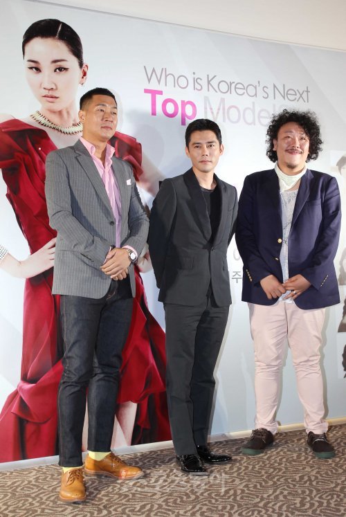 14일 오후 서울 종로구 신문로2가 광화문 시네마루에서 열린 온스타일 '도전! 수퍼모델 KOREA' 제작발표회에서 MC를 맡은 크레이티브 디렉터 박형준, 크리에티브 디렉터 우종완, 디자이너 로건(왼쪽부터)가 포즈를 취하고 있다.