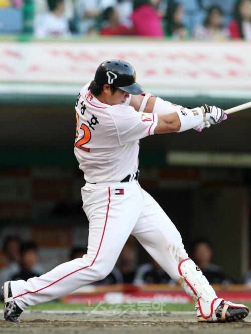 23일 인천 문학야구장에서 열린 2010 프로야구 SK와 LG의 경기에서 2회말 1사 1루 상황에 정상호가 투런 홈런을 날리고 있다.