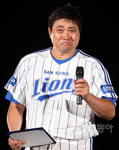 자신의 은퇴경기에서 눈물을 보이고 있는 양준혁. 스포츠동아 DB