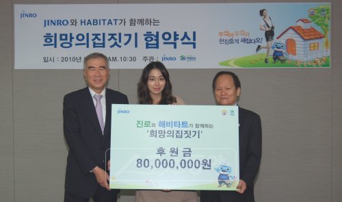 ㈜진로가 최근 서울 서초동 본사에서 한국 해비타트와 협약식을 체결하고, 희망의 집짓기 후원금 8000만원을 전달했다.