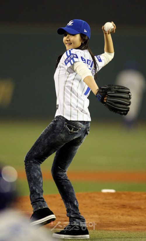 18일 저녁 대구 시민야구장에서 열린 2010프로야구 삼성과 SK의 한국시리즈 3차전에서 박민영이 시구를 하고 있다.