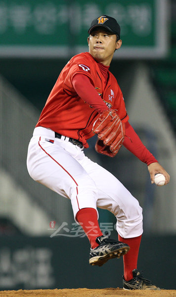 한국시리즈 엔트리가 발표됐을 때 SK의 ‘큰’ 이승호(등번호 37·사진)를 주목하는 시선은 거의 없었다. 시즌 내내 필승 불펜으로 활약한 정우람과 ‘작은’ 이승호, 그리고 전병두 등 좌완 투수가 풍부한 SK에서 그의 역할이 많아 보이지 않았다. 역시나 이승호는 2차전에서 선발로 등판했지만 1.2이닝을 던지고 마운드에서 내려왔다. 자연스럽게 ‘위장선발’, 혹은 ‘정찰조’라는 말이 뒤따랐다. 그러나 시리즈가 시작되기 전 김성근 감독은 미디어데이에서 이승호를 “시리즈의 키플레이어다”라고 기대했다. 2차전에서 별다른 활약을 펼치지 못했지만 “1회만 잘 버텨주면 대만족이었는데, 아주 잘해줬다”고 성적 이상으로 칭찬을 했다. 감독의 믿음에 보답하듯 이승호는 시리즈 전체에 분수령이 될 수 있었던 3차전에서 프로 데뷔 12년 만에 포스트시즌, 그것도 한국시리즈에서 첫 승을 올렸다.