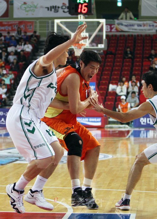 19일 오후 인천 삼산체육관에서 열린 2010-2011 현대모비스 프로농구 인천 전자랜드와 원주 동부의 경기에서 전자랜드 서장훈이 상대의 거센 마크를 피하고 있다.