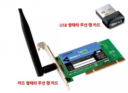 랜 카드는 형태에 따라 일반 유선 랜 카드와 무선 랜 카드로 나눌 수 있다. 케이블만 있고 없을 뿐 나머지는 동일하다. 무선 랜 카드의 경우 데스크탑 메인보드에 장착하는 카드형과 노트북 등의 USB 포트에 연결하는 USB형 랜 카드가 존재한다. 앞선 강의에서도 지적한 바 있지만, 무선 랜을 사용할 결정적인 이유가 없는 이상 가급적 유선 랜을 사용하는 것이 여러 가지로 바람직하다. 특히 컴퓨터 수가 많은 환경이라면 더더욱 그러하다. 무선 랜은 랜 케이블이 없어 이동하며 사용할 수 있다는 점 외의 장점이 없다.