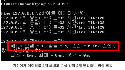 끝으로, 갑자기 인터넷이나 네트워크 통신이 안 된다면 여러 가지 방법으로 원인을 분석할 수 있는데, 가장 초동적인 것이 현재 자신의 컴퓨터 랜 카드의 작동 상태를 확인하는 것이다. 우선 윈도우 운영체제의 ‘장치관리자’에서 네트워크 어댑터 항목에 별다른 표시/표식이 있는지 확인한다. 그런 다음 명령 프롬프트를 열고 ‘ping’이라는 명령어로 ‘ping localhost’ 또는 ‘ping 127.0.0.1’이라 실행한다. ‘ping’은 해당 기기(컴퓨터 또는 네트워크 장비)에 일정 크기의 데이터(패킷)를 보냄으로써 ‘온라인’ 상태인지를 점검하는 명령어인데, ‘localhost’와 ‘127.0.0.1’이 자신의 컴퓨터를 나타내는 이름과 IP 주소다. 결국 컴퓨터가 자기 자신에게 ping 명령을 수행함으로써, 적어도 컴퓨터가 네트워크 통신을 할 준비가 되어 있는지 자체 점검하는 셈이다. 위와 같은 ping 실행 결과가 아래와 같다면, 적어도 컴퓨터와 랜 카드에는 문제가 없는 것으로 판단할 수 있다.