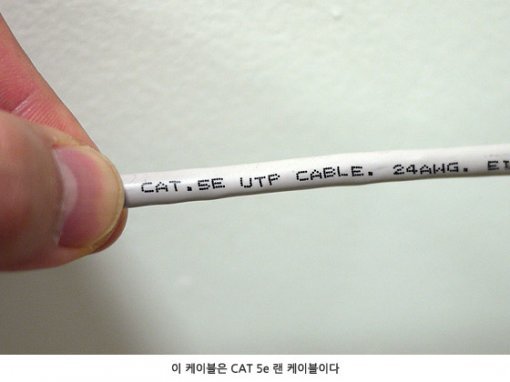 한편 UTP 랜 케이블의 피복 중간 중간에는 규격 등을 표시하는 글자가 있는데, 여기서 눈여겨볼 것이 ‘카테고리(CAT, Category)’ 구분이다. 일반 용도로 사용되는 UTP 랜 케이블은 데이터 전송 대역폭에 따라 CAT 5, CAT 5e, CAT 6, CAT 6e 등으로 구분되며, 최근에는 CAT 7 규격도 등장했다. 간단히 말해, CAT 5는 10/100Mbps용, CAT 5e와 CAT 6, CAT 6e는 1Gbps(1,000Mbps)용, CAT 7은 10Gbps용이라 할 수 있다. 가정이나 사무실, PC방 등에서는 CAT 5나 CAT 5e가 주로 사용되고, CAT 6 이후 케이블은 기업 서버용 등 특수 목적으로 사용된다.