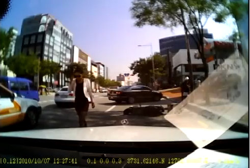 공개된 '벤츠녀 동영상' 속의 여성은 도로에서 오토바이 사고로 쓰러져 있는 남자를 부축해 인도로 옮겨 주었다.