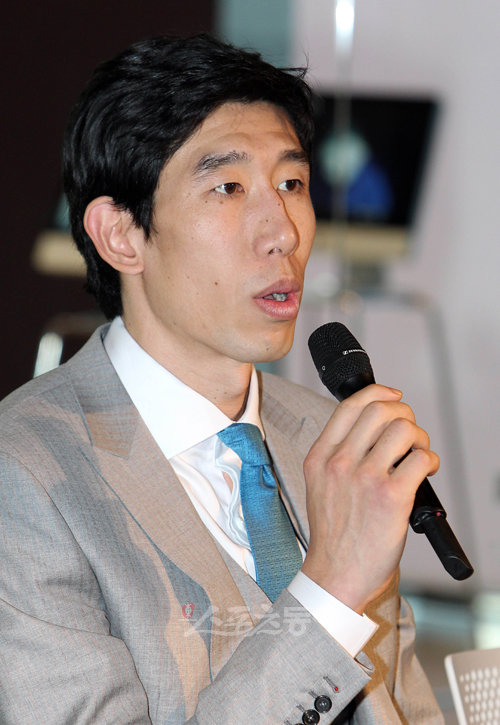 프로배구 현대캐피탈의 주장 후인정이 29일 서울 영등포구 여의도동 현대캐피탈 본사에서 열린 '2010~2011 V리그' 출정식 및 미디어데이에서 올 시즌 각오를 말하고 있다.