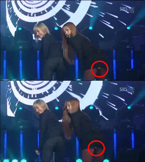특히 여성멤버 한별혜원은 마지막 무대에서 엉덩이 춤을 격렬하게 추다 흰 속바지가 노출돼 보는 이들을 놀라게 했다. 이날 남녀공학 멤버들의 무대의상은 블랙계열, 한별혜원의 흰색 속바지는 유독 도드라져 보였다.