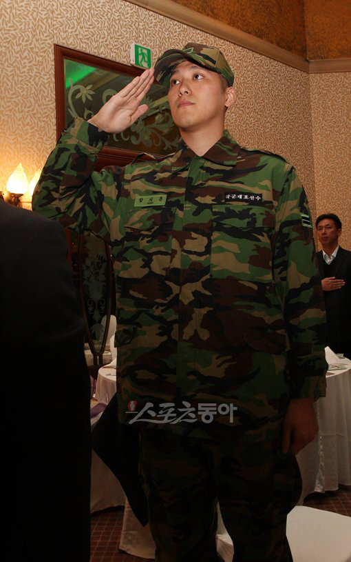 동아일보와 스포츠동아가 야구 축구 농구(남녀) 배구(남녀) 골프(남녀)등 국내 5대 프로 스포츠에서 올 한 해를 빛낸 최고의 선수를 선정하는 ‘2010 동아스포츠대상 시상식’이 13일 오전 11시 서울 중구 더 플라자 별관 그랜드 볼룸에서 열렸다. 함지훈 선수가 국민의례 순서에 거수경례를 하고 있다.