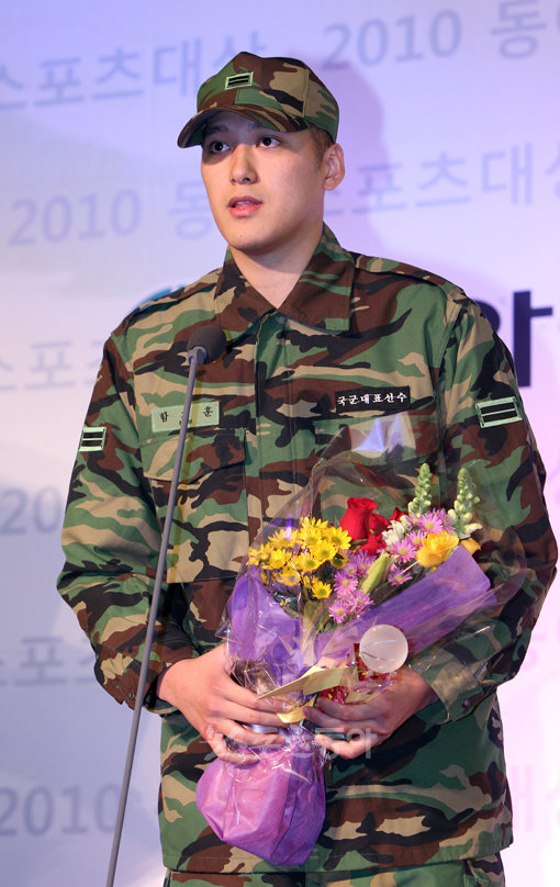 스포츠토토와 함께하는 2010 동아스포츠대상 시상식이 13일 더 플라자호텔에서 열렸다. 남자프로농구 부문 대상을 수상한 함지훈이 수상소감을 말하고 있다.