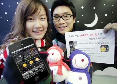 최근 잦은 대설 한파로 일기 예보에 대한 전 국민의 관심이 높아졌다. 이 때 유용한 모바일 응용 프로그램이 나왔다.KT는 기상청 정보를 이용한 공신력 있는 날씨 정보를 무료로 제공받을 수 있는 아이폰용 ‘올레(olleh) 날씨’ 애플리케이션을 이통사 최초로 출시했다고 12월 31일 밝혔다.