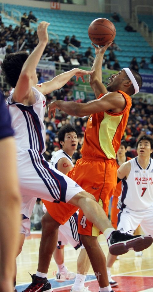 2일 오후 인천 부평구 삼산동 삼산월드체육관에서 열린 2010-2011 현대모비스 프로농구 인천전자랜드와 안양인삼공사의 경기에서 전자랜드의 문태종이 상대수비를 피해 공격을 시도하고 있다.