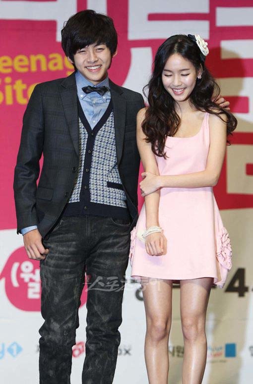 4일 오전 경기영어마을 파주캠프 내 콘서트홀에서 열린 틴에이저 시트콤 MBC every1 '레알스쿨(극본 스토리박스/ 연출 이근욱)' 제작발표회에서 배우 동호와 김수연이 다정한 포즈를 취하고 있다.