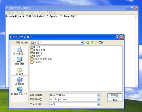 성별을 확인하는 방법은 우선‘메모장’을 열어 그 안에 CreateObject(“SAPI.SpVoice”).Speak “I love YOU”라고 적은 후 저장할 때 확장자 이름을 ‘.vbs’로 하면 된다.