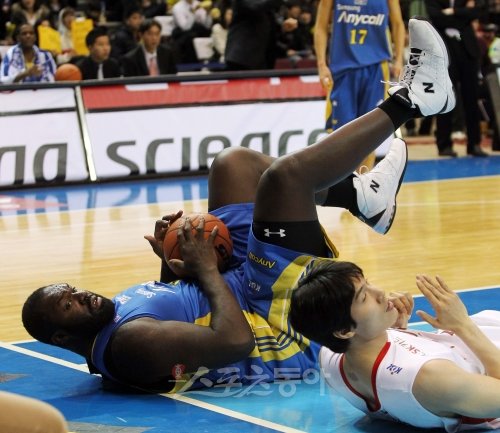 20일 서울 잠실실내체육관에서 열린 2010-2011 현대모비스 프로농구 서울삼성과 서울SK의 경기에서 삼성의 딕슨이 공격도중 넘어지고 있다.
