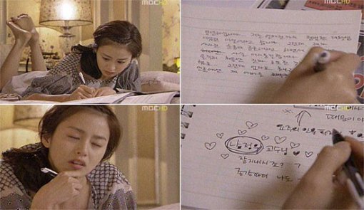 마구 휘갈겨 쓴 글씨임에도 불구하고 귀여움이 가득한 글씨체여서 눈길을 끌었다. 특히 짝사랑하는 남정우(류수영) 교수의 이름 옆에 하트를 그려 넣어 귀여움이 더욱 돋보였다.
