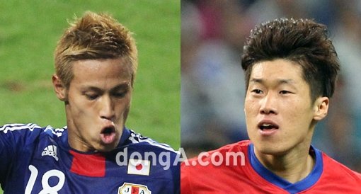 혼다(왼쪽), 하세베가 버티는 미드필드 라인이 일본의 강점이다. 해외파의 대표선수 혼다가 절정의 기량으로 일본 대표팀을 이끌고 있다. ‘캡틴’ 박지성(오른쪽)은 존재만으로도 상대를 압박한다. EPL 듀오 박지성과 이청용이 이끄는 한국의 미드필드는 일본보다 한수 위다.