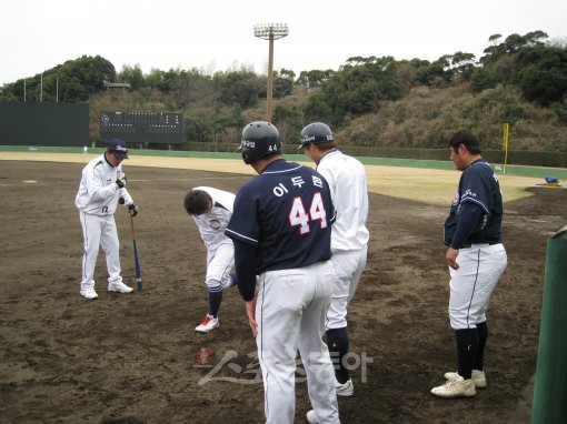 이날 김 코치의 호각에 가장 혹독하게 당한 이는 다름 아닌 김동주였다. 김 코치는 맏형을 이리저리 움직이며 후배들을 긴장시키더니 김현수→윤석민→최준석→이두환 순으로 강도를 점차 낮췄다.