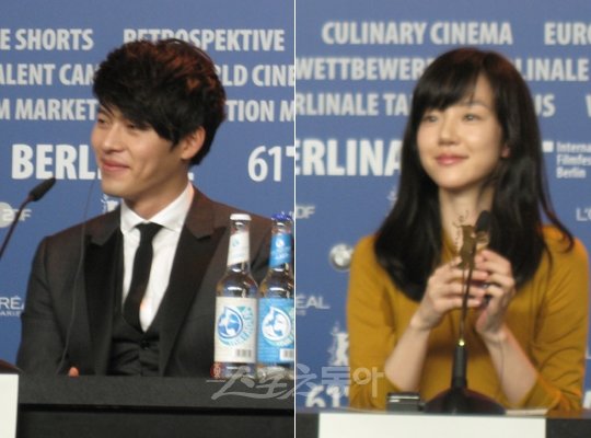 이들은 17일 오후 7시(이하 한국시간) 독일 베를린 포츠담광장 베를리날레 팔라스트에서 열린 제61회 베를린 국제영화제 경쟁부문 상영작 ‘사랑한다, 사랑하지 않는다’ 기자회견에 참석해 쏟아지는 해외 언론의 카메라 플래시를 받았다. 연출자 이윤기 감독과 함께 나선 두 사람은 시종 밝고 여유로운 표정으로 취재진의 질문에 답했다.