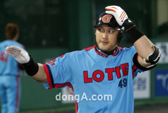 외야수 전향을 시도하고 있는 롯데 홍성흔(35·사진). 최근 가고시마 캠프에서 만난 그는 연이은 동료들의 칭찬에 “이제 더 이상 내 수비는 화제가 되지 않는다”며 짐짓 거만(?)한 표정을 지었다.