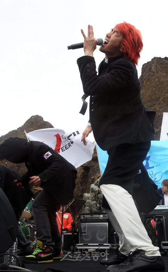 1일 오후 경북 울릉군 울릉읍 독도리에서 ‘김장훈 독도 콘서트’가 반크회원, 일반인 등 총 300여명 원정대가 참석한 가운데 열렸다. 가수 김장훈이 독도 앞에서 화려한 공연을 펼치고 있다.