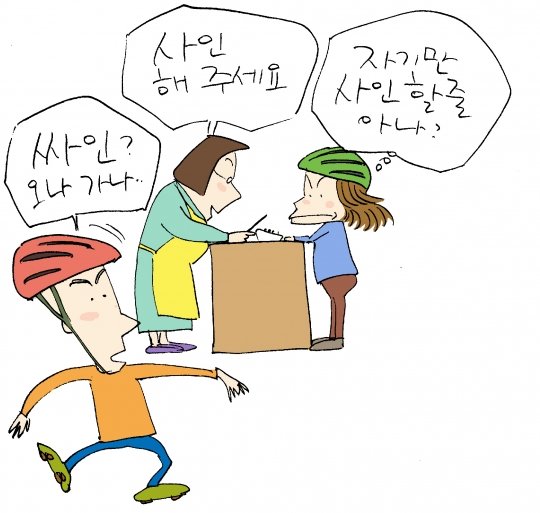 그런 허화백이 자전거 여행 중 들른 한 식당에서 살짝 굴욕을 당했다. 식사비를 신용카드로 지불하자 주인이 카드전표에 사인을 하라는 뜻으로 필자에게 ‘사인해주세요’라고 말한 것. 식당 밖으로 나가는 찰나였던 허 화백은 예의 사인을 해달라는 뜻으로 알고 발길을 되돌려 주인 앞에 섰으나 주인은 멀뚱히 쳐다보기만 한 것이다. 주인과 허 화백 사이에 어색한 침묵이 흘렀고, 잠시 후 상황을 파악한 허 화백은 겸연쩍게 돌아서야했다. <삽화=허영만>