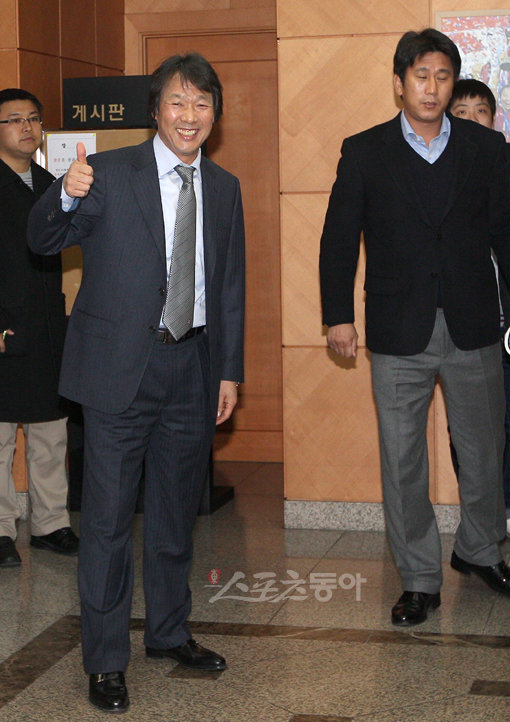 성인 대표팀과 올림픽 대표팀 중복 차출에 따른 갈등을 사전에 방지하기 위해 조광래 국가 대표팀 감독과 홍명보 올림픽 대표팀 감독이 2일 오전 서울 신문로 축구회관에서 만났다. 조광래 감독이 접견실을 향하고 있다.