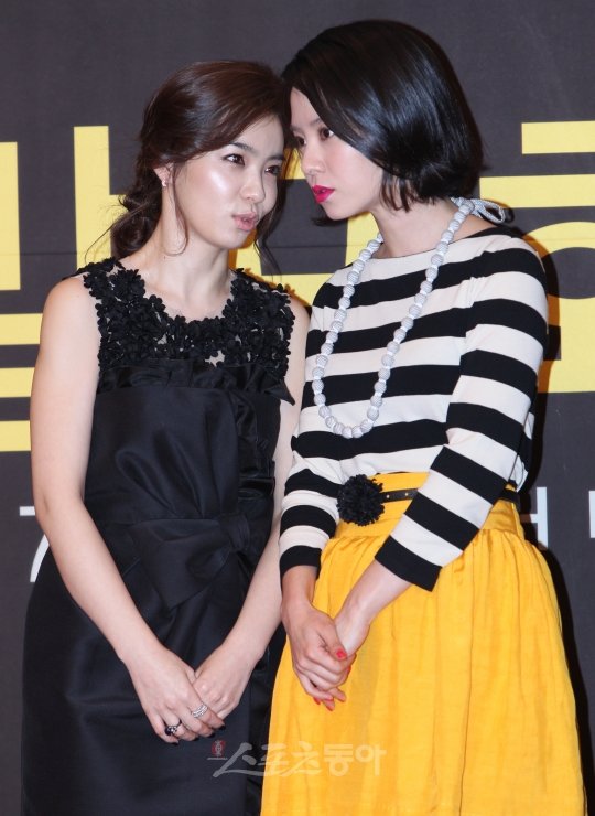 연기자 박선영과 송지효가 2일 오후 서울 마포구 도화동 서울가든호텔에서 열린 KBS 2TV 월화미니시리즈 ‘강력반’ 제작발표회에 참석해 담소를 나누고 있다.