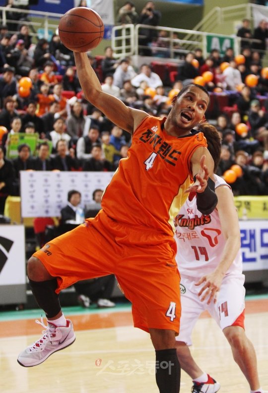 2일 저녁 인천삼산월드체육관에서 열린 2010-2011 인천전자랜드와 서울SK의 경기에서 전자랜드 문태종이 SK 손준영의 수비를 피한 후 돌파하고 있다.