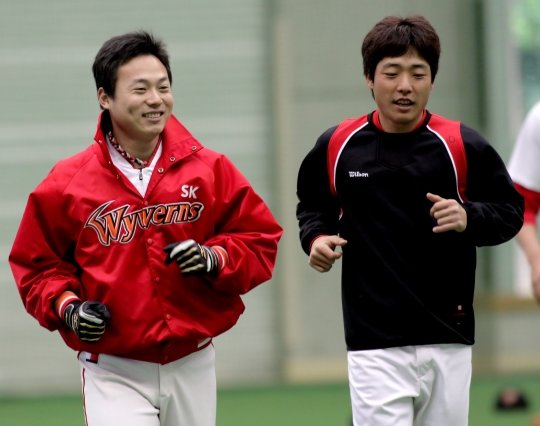 그러나 어린 신부 생각이 어찌 간절하지 않을까. 박재상은 “처음에는 너무 보고 싶어서 꿈속에 아내가 나타나더라. 그런데 이제는 얼굴을 잊어버렸다. 재회하면 낯선 사람을 만나는 기분일 것 같다”고 너스레를 떨었다. 그때 곁에서 이 말을 듣고 있는 또 한명의 새 신랑 정우람은 남 일이 아니라는 듯 미소만 짓고 있었다.