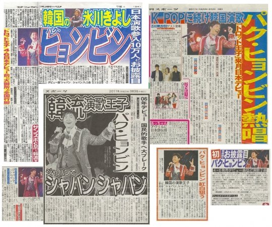 박현빈을 일제히 보도한 일본 스포츠신문들.