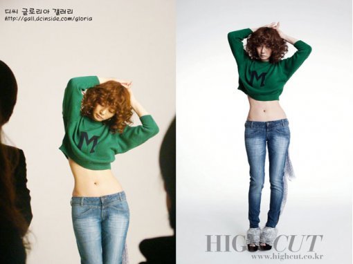 놀라운 점은 배두나를 직접 찍은 사진과 화보에 실린 사진과 별 반 다르지 않다는 것이다. 배두나는 짧은 녹색 스웨터를 입고 손을 들어올려 배가 보여 배두나의 허리선이 그대로 들어났다. 사진 속 배두나의 허리는 군살이 전혀없는 자연스러운 ‘S라인’이었다.
