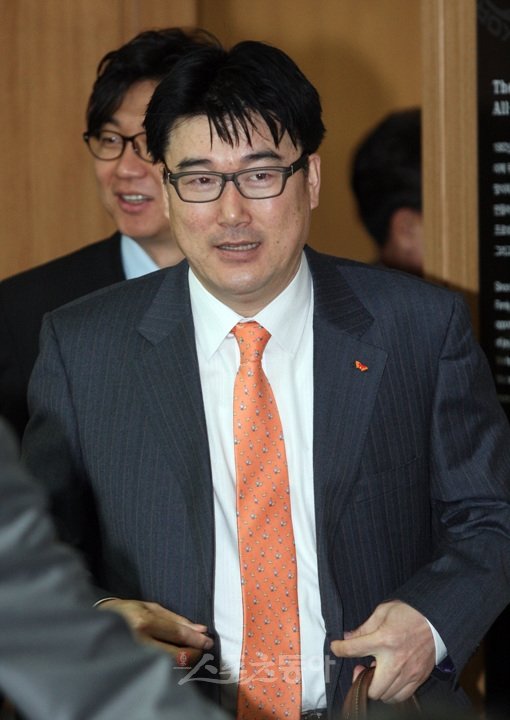8일 오전 서울 강남구 도곡동 야구회관 6층 회의실에서 열린 실행위원회에서 민경삼 SK단장이 신규구단 창단기준 및 일정에 대해 논의하기 위해 들어서고 있다.