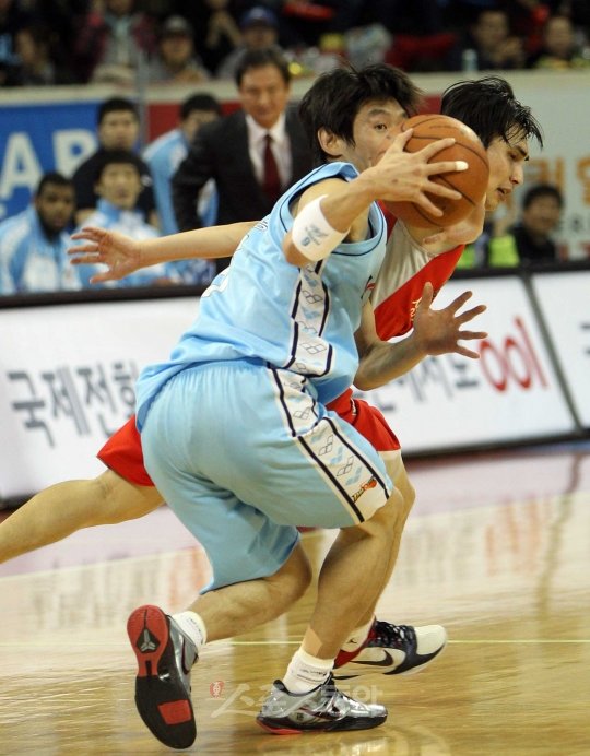 8일 오후 서울 잠실학생체육관에서 열린 2010-11시즌 프로농구 서울 SK와 울산 모비스의 경기 에서 모비스 양동근이 SK 주희정의 볼을 가로채고 있다.