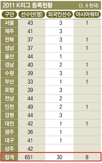 ■ K리그 등록 선수 651명 들여다 봤더니…
