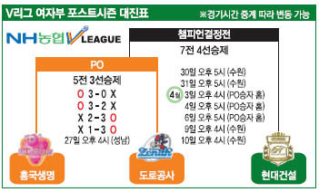 벼랑 끝에 몰린 도로공사가 2연패 이후 2연승을 하며 기사회생했다. 도공은 24일 인천 도원시립체육관에서 열린 V리그 여자부 플레이오프(5전 3선승제) 4차전에서 흥국생명을 세트 스코어 3-1(17-25 28-26 25-20 26-24)로 꺾고 시리즈를 최종 5차전까지 몰고 갔다. 원정에서 2승씩 챙긴 두 팀은 챔피언결정전을 놓고 27일 성남에서 PO 최종전을 치른다.