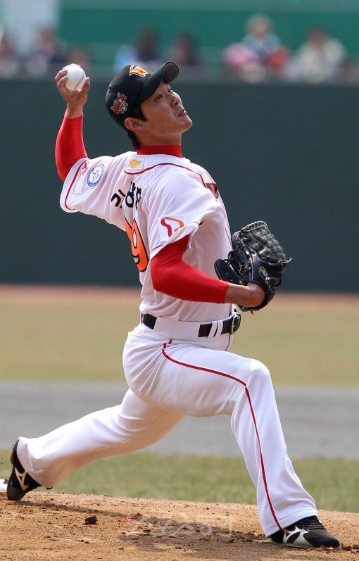 27일 오후 인천 문학야구장에서 열린 프로야구 넥센 히어로즈와 SK 와이번스의 시범경기에서 SK 선발 투수 김광현이 역투하고 있다.