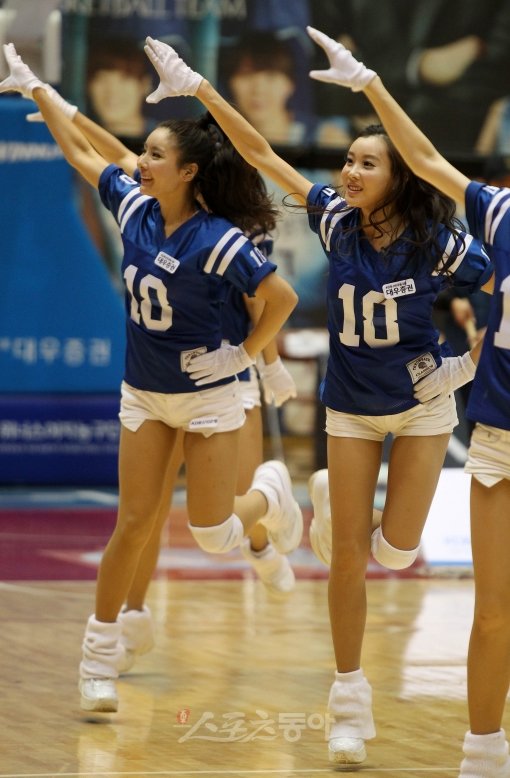 30일 오후 경기도 구리실내체육관에서 열린 여자프로농구 챔피언 결정전 2차전 신 한은행과 KDB생명의 경기에서 치어리더들이 흥을 돋우며 응원을 펼치고 있다.