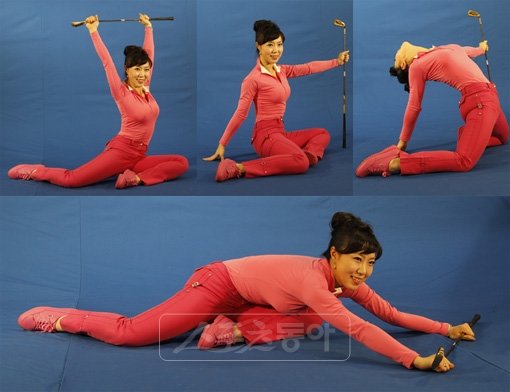 ※ 주의: 3번 자세에서 클럽의 그립을 바닥과 직각이 되게 똑바로 세워 고정한 후 엉덩이를 들어올린다.