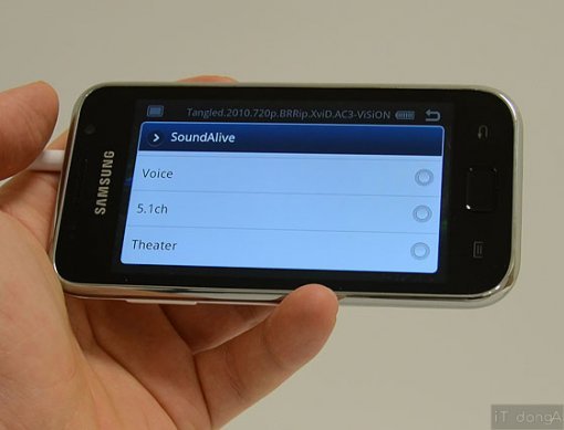 대신 갤플은 PMP답게 외장 스피커 출력이 갤럭시S보다 월등히 좋다. 그리고 스피커 구멍도 두 개다. 그래서인지 갤럭시S의 경우 음악/동영상의 볼륨 조절 최대치가 15인 반면 갤플은 30이다. 그리고 갤럭시S에는 없는 음향효과인 ‘사운드얼라이브(SoundAlive)’ 기능이 가미됐다. 사운드를 중시하는 사용자들로부터 이미 호평을 받은 바 있으며, 외장 스피커보다는 이어폰을 사용할 때 확연한 음질적 차이를 느낄 수 있었다.