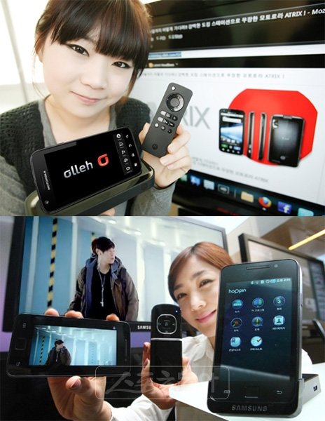 휴대폰과 PC, TV 등 다양한 기기에서 동일한 콘텐츠를 이용할 수 있는 N스크린 서비스에 특화된 스마트폰이 소비자들에게 큰 인기다. KT를 통해 출시된 모토로라 ‘아트릭스(위쪽)’와 SK텔레콤의 N스크린 서비스를 이용할 수 있는 삼성전자의 ‘갤럭시S호핀’.